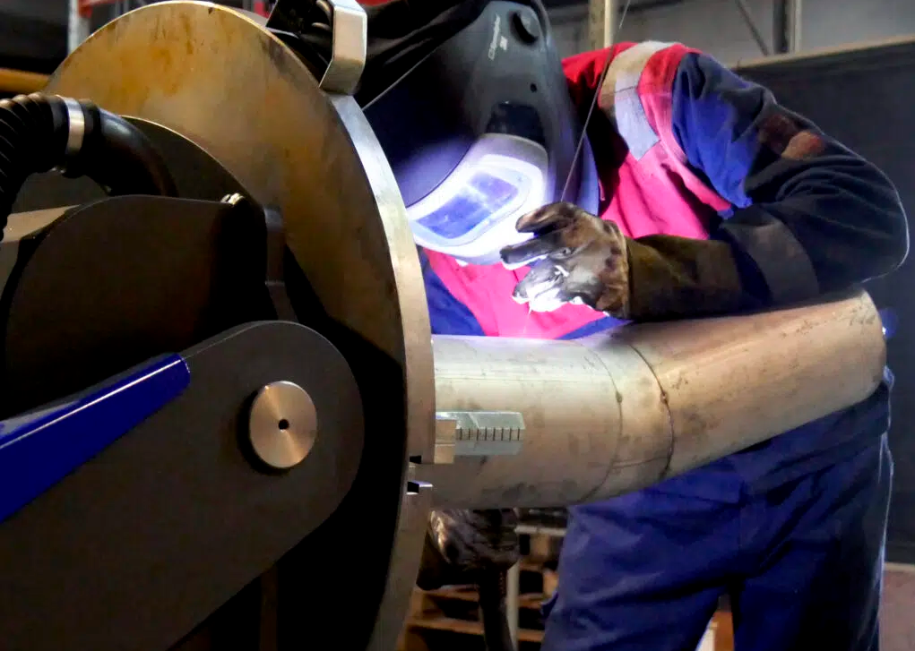 It fits the ends of two pipes together and then welds them with welding materials to form a continuous pipe.