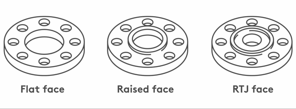 RFRaised FaceRaised circular ringGasket within raised areaMedium-high pressureGeneral industrial servicesProcess piping (Class 150-600)