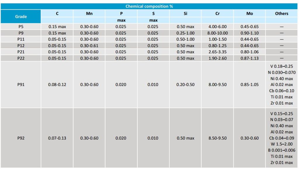 | 3 | Nippon Steel Corporation | Tokyo, Japan | – Cr-Mo alloy pipes (ASTM A335 P11-P92) – Super duplex stainless (UNS S32750) |