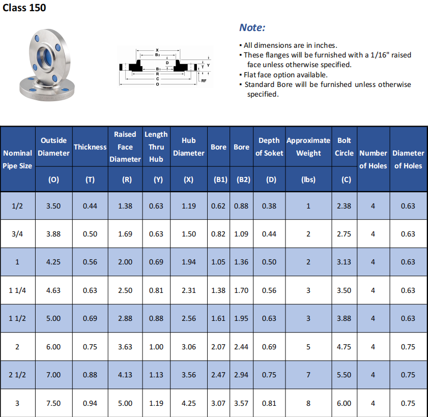 For example, in the ASME B16.5 standard, Class 150 integral flanges can be designed for pressures up to 1.9 MPa.