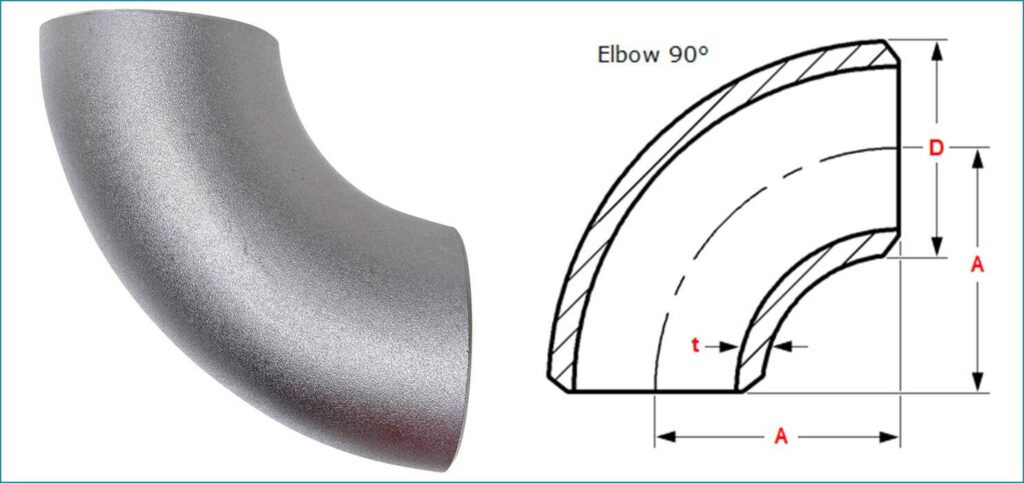 ASME B16.9 covers elbows of different angles, such as 45-degree and 90-degree elbows. It also provides clear specifications for elbow radii, wall thicknesses, and connection methods.