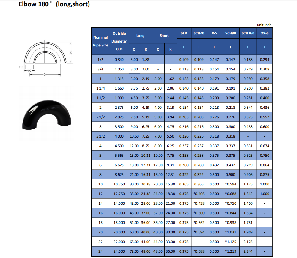 The ASME B16.9 standard clearly specifies the dimensional tolerances for stainless steel weld neck elbows, including length, wall thickness, inner diameter, outer diameter, and other aspects. Dimensional deviations must be within the tolerance range specified in the standard.